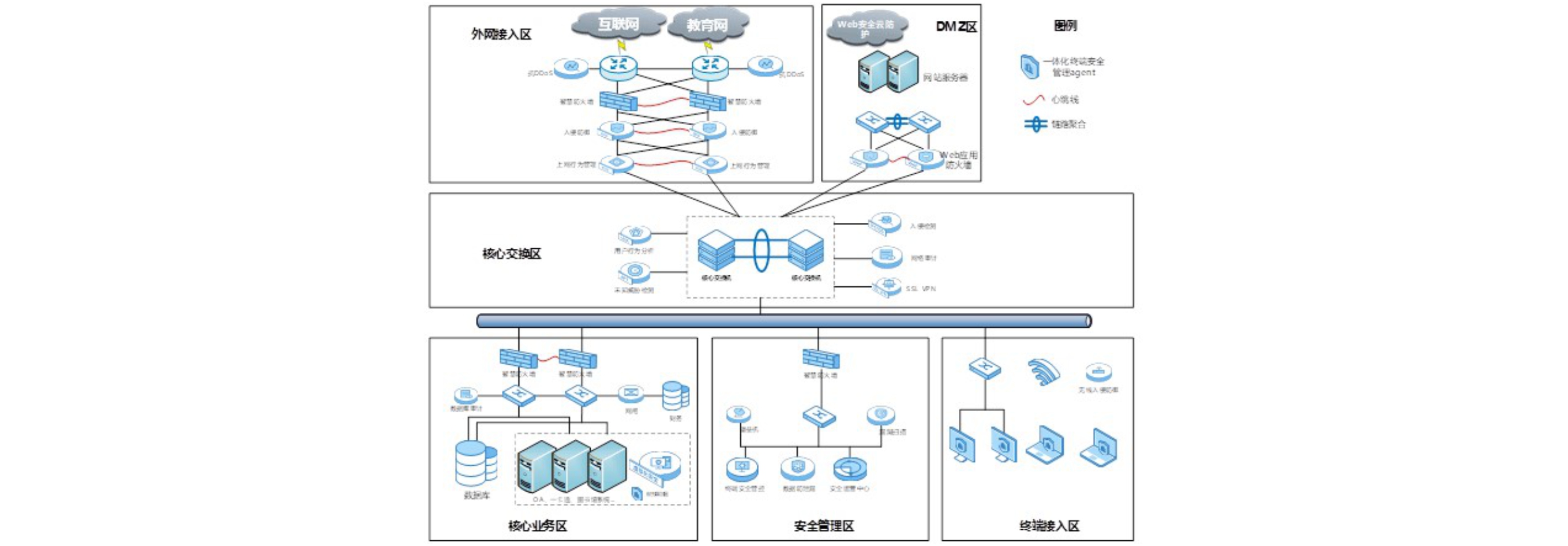 實現(xiàn)校園網(wǎng)絡(luò)所有終端設(shè)備的安全統(tǒng)一管理,統(tǒng)一監(jiān)控,統(tǒng)一防護。