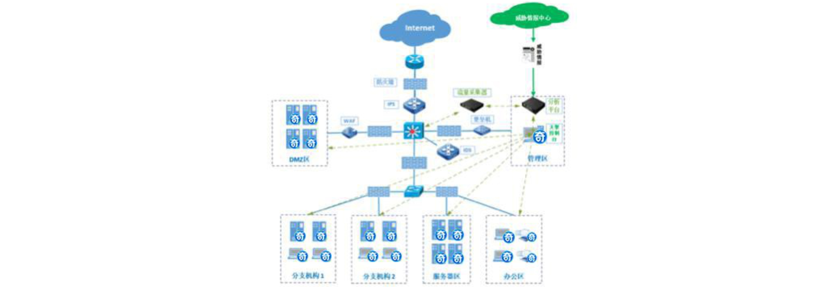 - 企業(yè)通過總部天擎終端安全管理中心對總部和分支機構(gòu)終端設(shè)置強管控安全策略,分支機構(gòu)在總部安全策略基礎(chǔ)上按需調(diào)整安全管控力度。在內(nèi)網(wǎng)部署私有云引擎,在不訪問外部互聯(lián)網(wǎng)情況下實現(xiàn)終端病毒云查殺。通過部署NAC網(wǎng)絡(luò)準(zhǔn)入設(shè)備,阻止未授權(quán)設(shè)備接入內(nèi)網(wǎng)和訪問敏感資源,保證內(nèi)網(wǎng)接入安全的同時也提高安全管理軟件的安裝率。